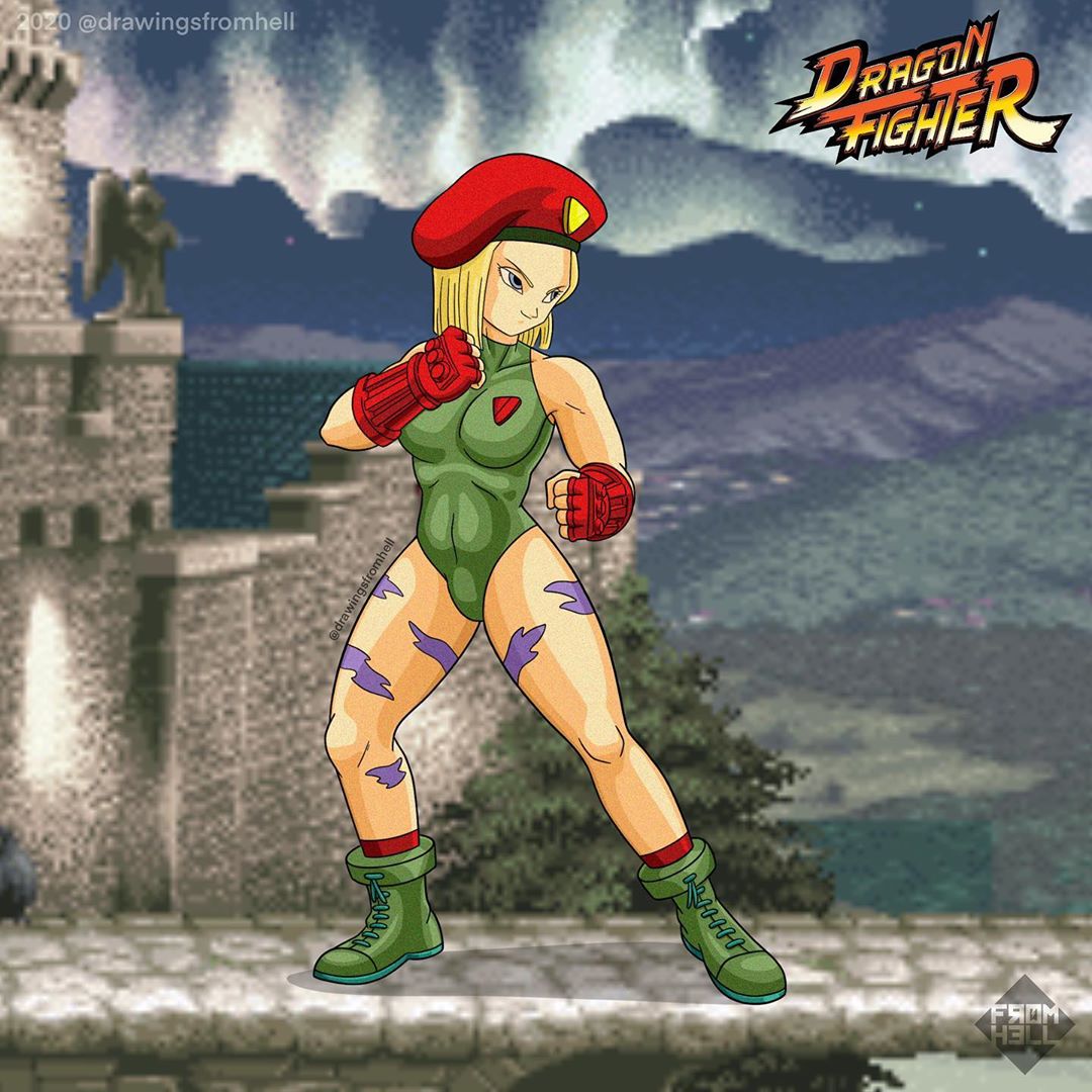 Este artista hace un crossover entre el popular videojuego, Street Fighter y el famoso manga de anime, Dragon Ball, haciendo unas ilustraciones de como se verían los personajes de Bola de Dragon con un estilo Street Fighter.