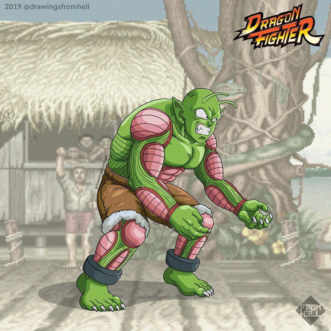 Street Fighter es una serie de videojuegos de lucha y de pelea callejera creada por la empresa Nipona, CAMPCOM. Es una serie que nació en 1987 teniendo gran popularidad, pero fue su continuación, Street Fighter II, que revolucionó causando un boom en los juegos de lucha, causando ventas millonarias de consolas por todo el mundo. Pero un artista ha tomado la iniciativa de ilustrar los personajes del manga japonés, al estilo Street Fighter. ¿Se imaginarían a Gokú, Crilin, Picolo, entre otros, con este estilo?
