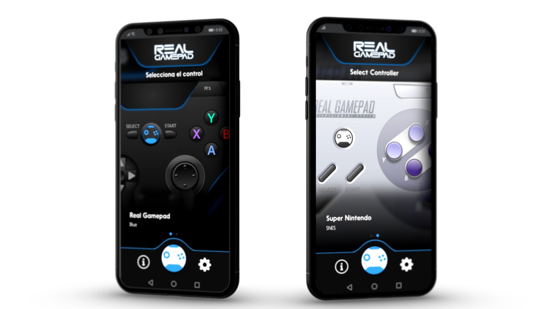 Con un gran diseño, en esta versión de lanzamiento de RealGamepad podrás usar la interfaz predeterminada sin restricción alguna. Las interfaces de controles de todas las principales consolas, incluyendo el tipo RETRO estarán disponible muy pronto en RealGamepad Pro.